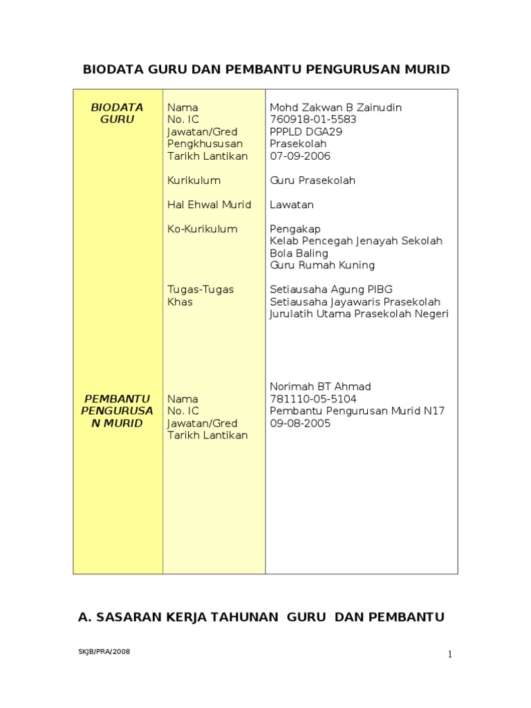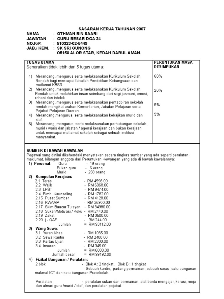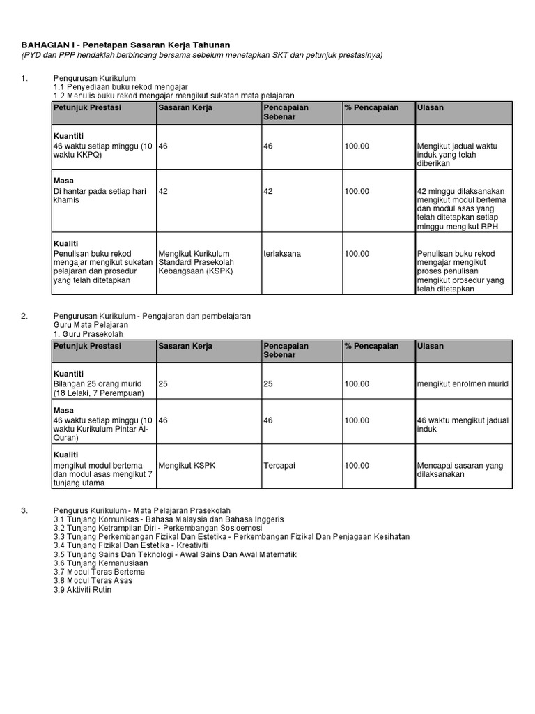 Sasaran Kerja Tahunan Guru Prasekolah Doc Document