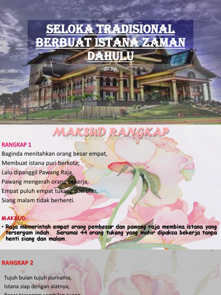 Seloka Berbuat Istana Zaman Dahulu Za Ba