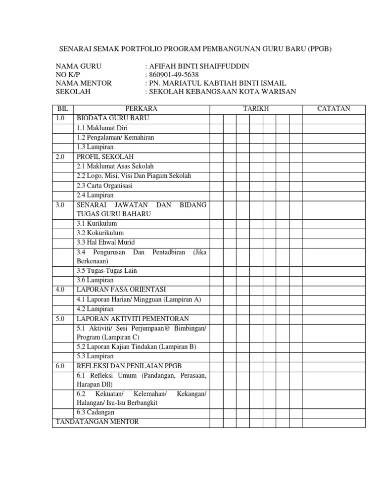 Senarai Semak Portfolio Program Pembangunan Guru Baru