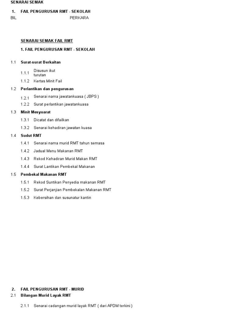 Senarai Semak Fail Rmt