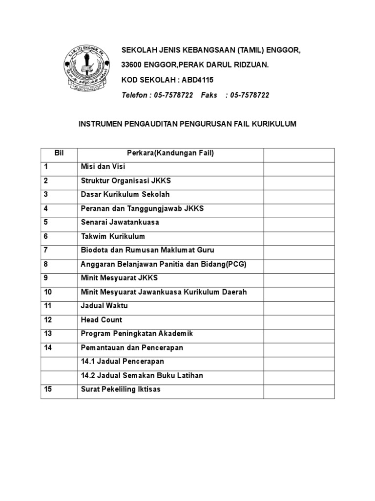 Doc Senarai Semak Fail Panitia Noor Akmal Wahab Zahari Academia Edu