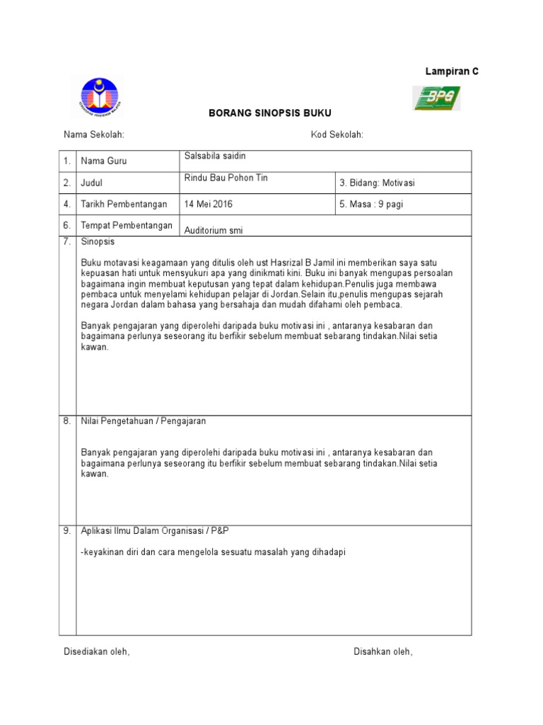 Borang Sinopsis Buku Untuk Guru Download
