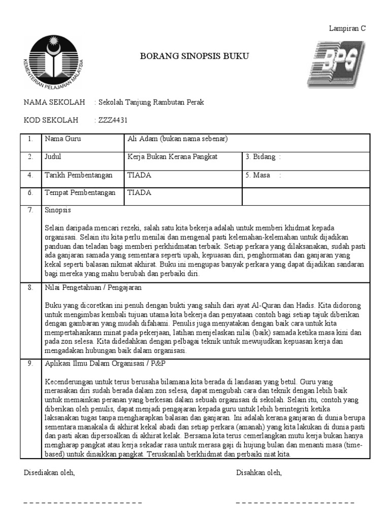 Doc Lampiran C Borang Sinopsis Buku Lizawati Masroni Academia Edu