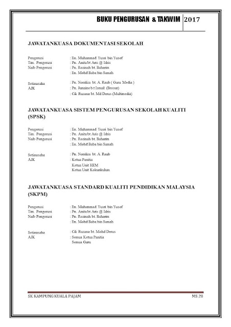 Sekolah Kebangsaan Kampung Kuala Pajam Buku Pengurusan Takwim 2017