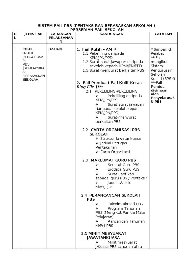 Sistem Fail Pbs Pentaksiran Berasaskan Sekolah Persedian Fail Sekolah