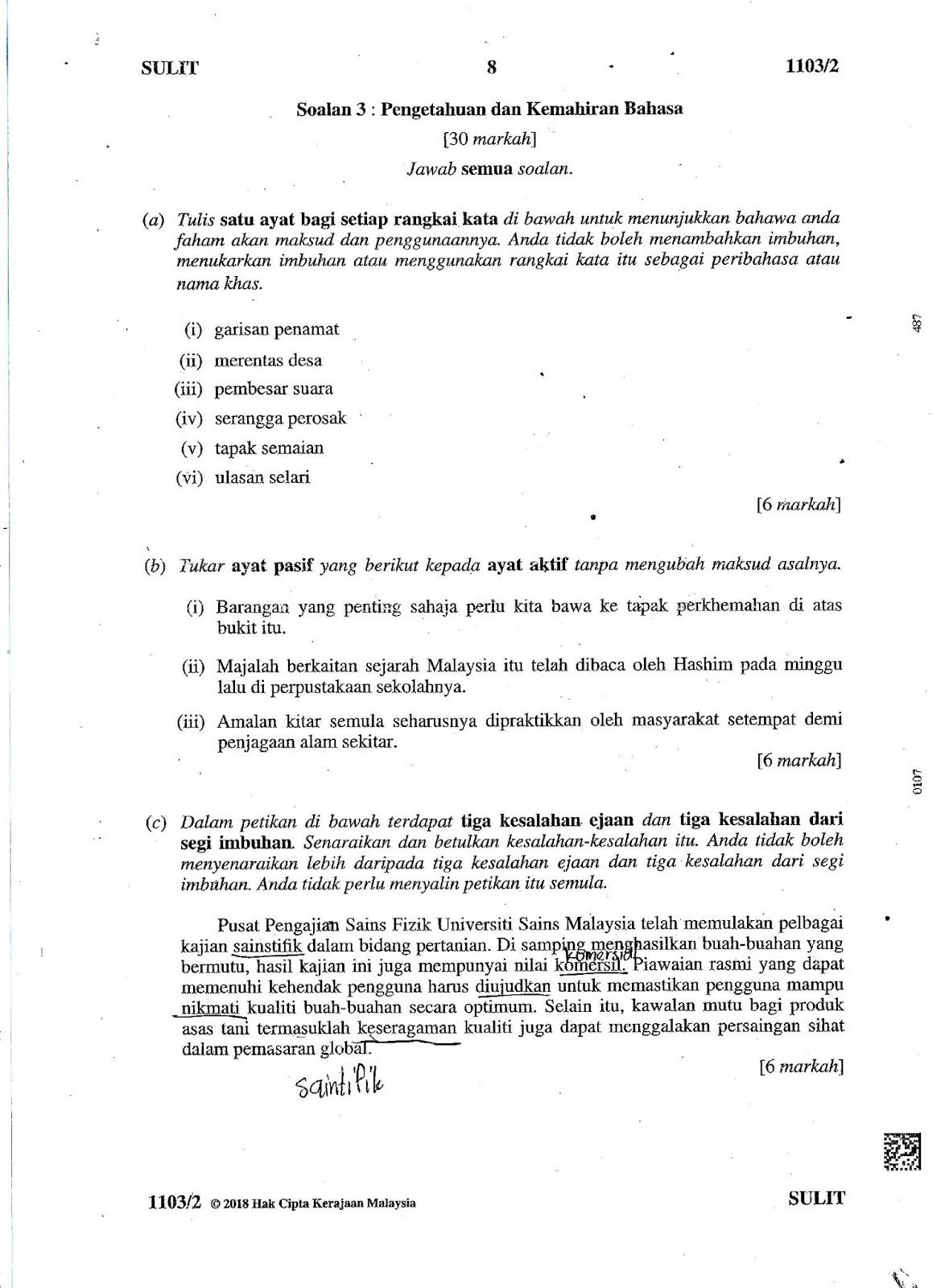Laman Bahasa Melayu Spm Soalan Kertas Bahasa Melayu 2 1103 2 Spm 2018