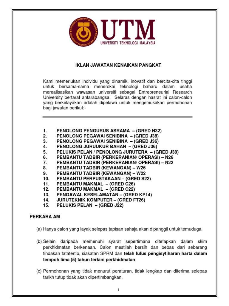 Pembantu Tadbir N17 Kpsl Universiti Sains Malaysia
