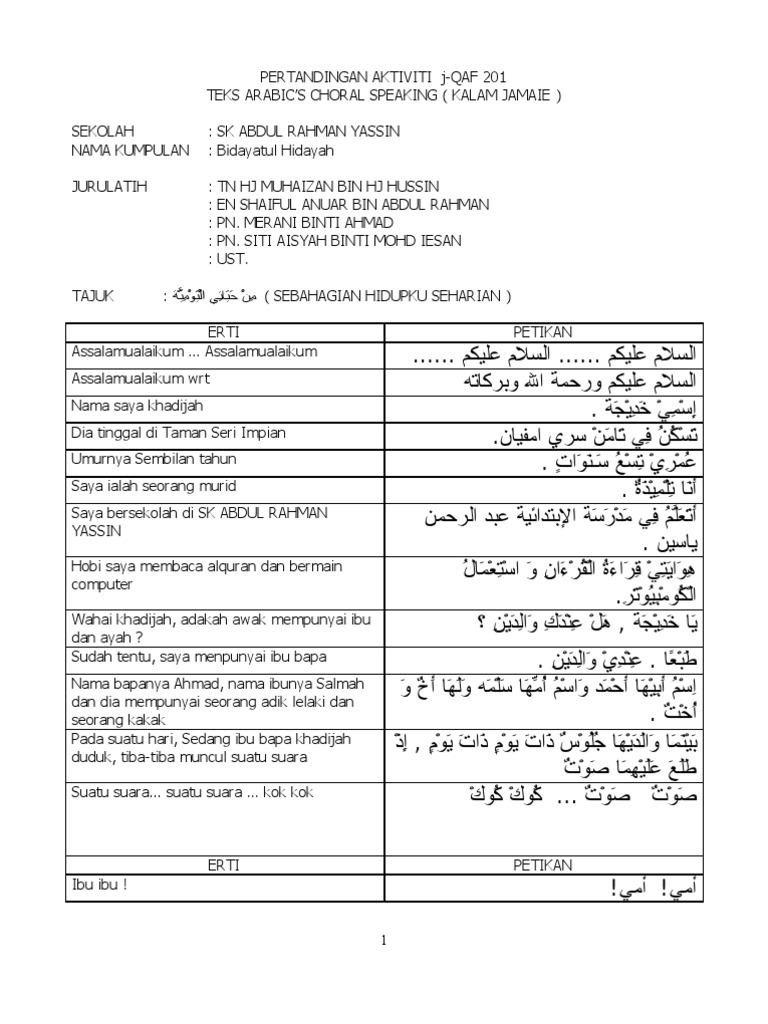 Kalam Jamaie Choral Speaking Bahasa Arab Unisza Youtube