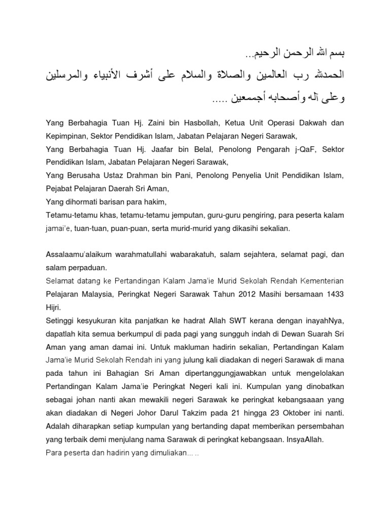 Skrip Pengacara Majlis Pertandingan Kalam Jama