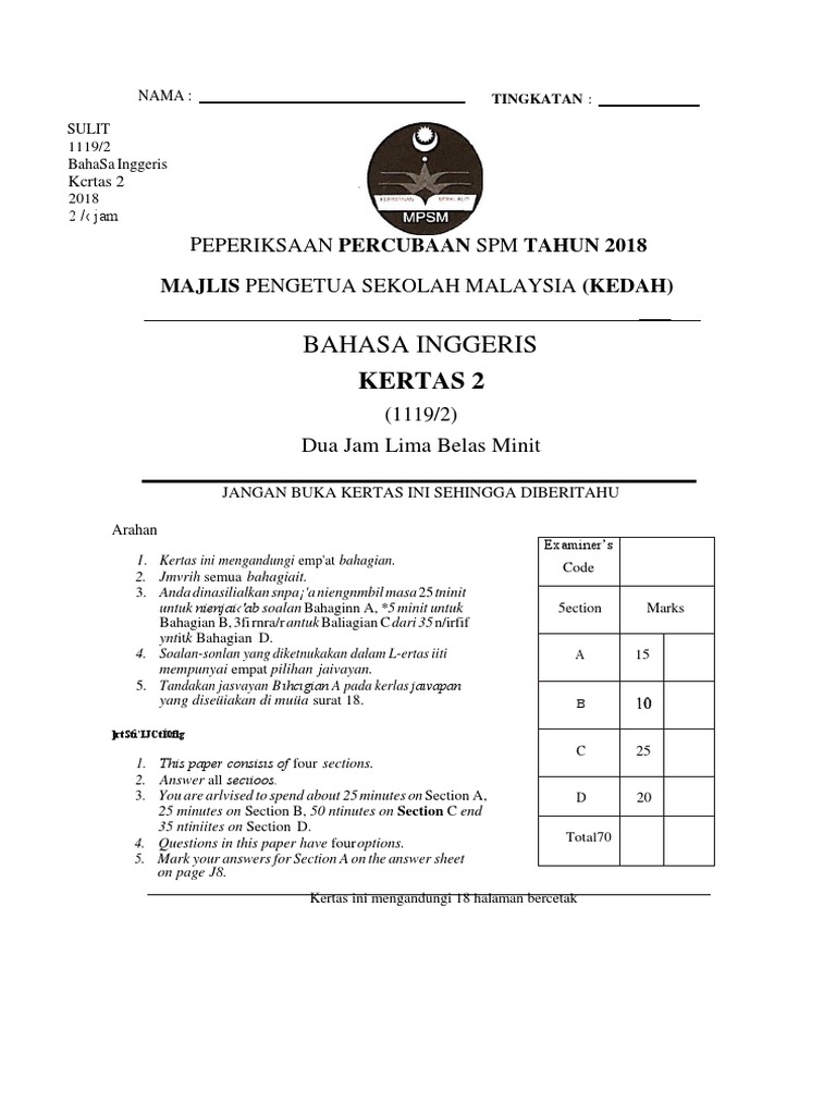 Contoh Soalan Spm Bahasa Inggeris Paper 2 Kecemasan C