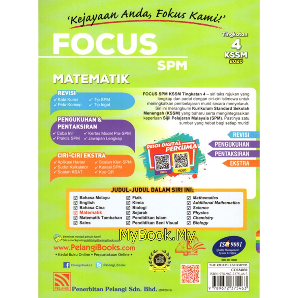 Myb Buku Rujukan Nota Focus Spm Tingkatan 4 Kssm Matematik Pelangi Shopee Malaysia