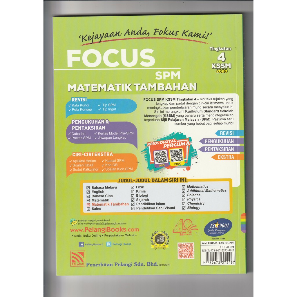 Buku Rujukan Focus Spm Tingkatan 4 Kssm 2020 Matematik Tambahan Add Math Bm Bi Version Pelangi Shopee Malaysia