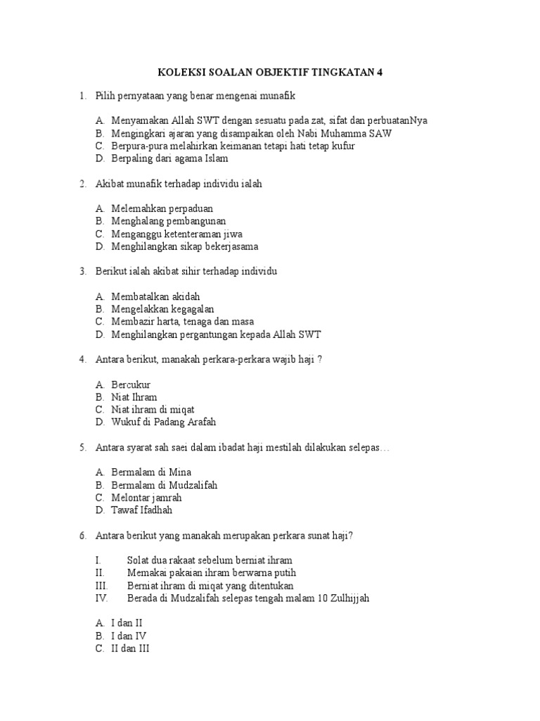 Soalan Dan Jawapan Tasawwur Islam Tingkatan 4 Kecemasan N
