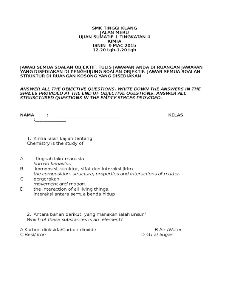 Contoh Soalan Peperiksaan Kimia Tingkatan 4 Viral Blog J