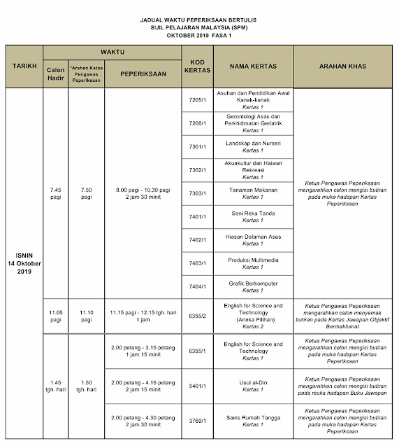 Jadual Waktu Peperiksaan Spm 2019 Exam Date Exam Dating