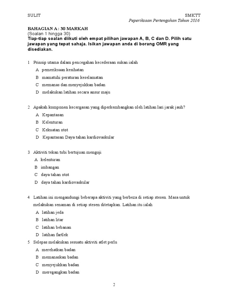 Soalan Peperiksaan Pertengahan Tahun Upt Kssm Tingkatan 3 Pendidikan Jasmani Cikgu Ayu