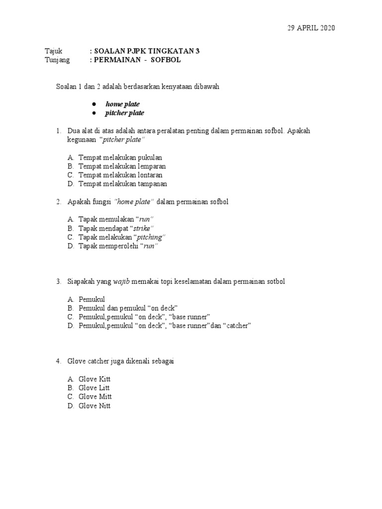 Soalan Pendidikan Jasmani Dan Kesihatan Tingkatan 2 Kssm