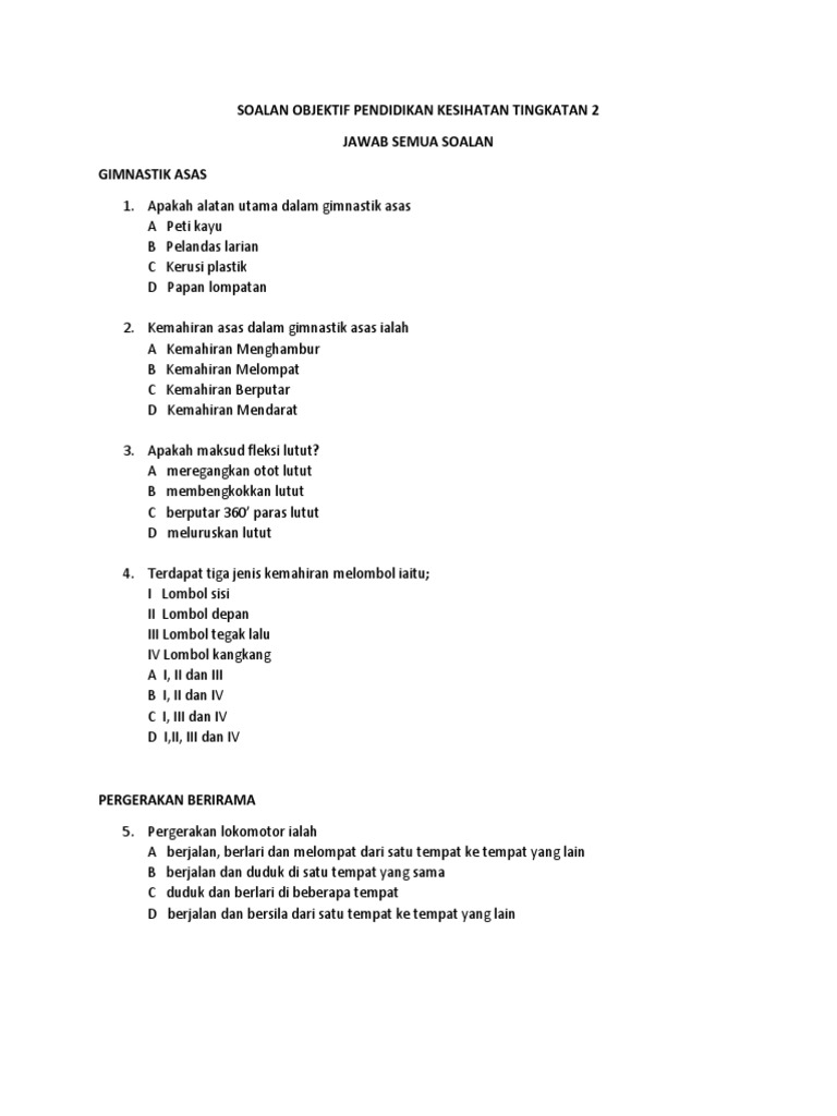 Soalan Peperiksaan Awal Tahun Pendidikan Jasmani Dan Kesihatan Tingkatan 2 Terhebat Koleksi Bank Soalan Tingkatan 1 Hingga Tingkatan 5 Sumber Pendidikan Skoloh