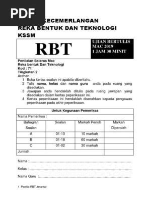 Modul Kecemerlangan Reka Bentuk Dan Teknologi Kssm Ujian Bertulis Mac 2019 1 Jam 30 Minit