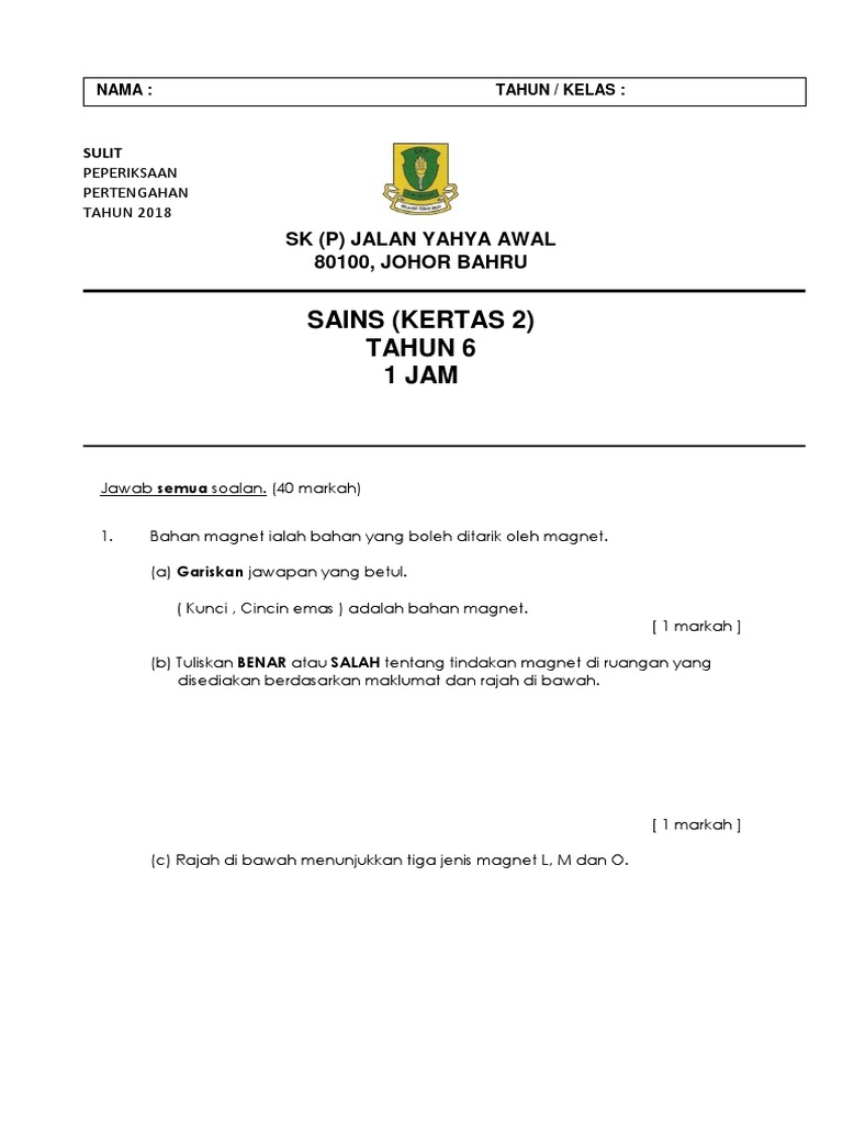 Soalan Kertas 2 Sains Tahun 6