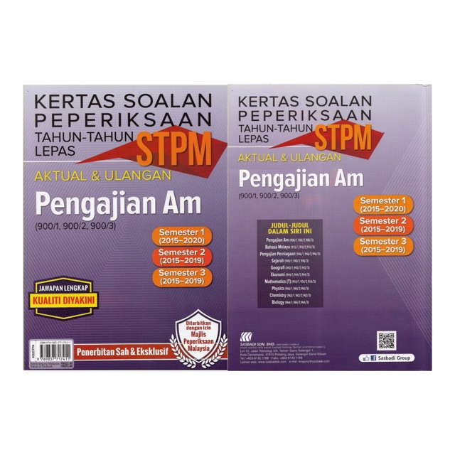 Ready Stock Sasbadi Kertas Soalan Peperiksaan Tahun Tahun Lepas Stpm Aktual Ulangan Semester 1 2 3 Pengajian Am Shopee Malaysia