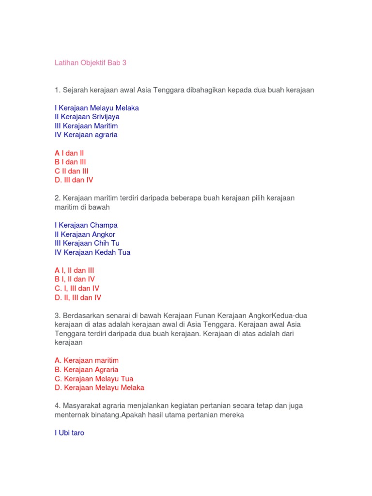 Contoh Soalan Ujian Bulanan Sejarah Tingkatan 4 Kosong Kerjo