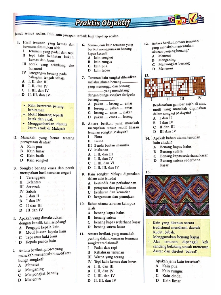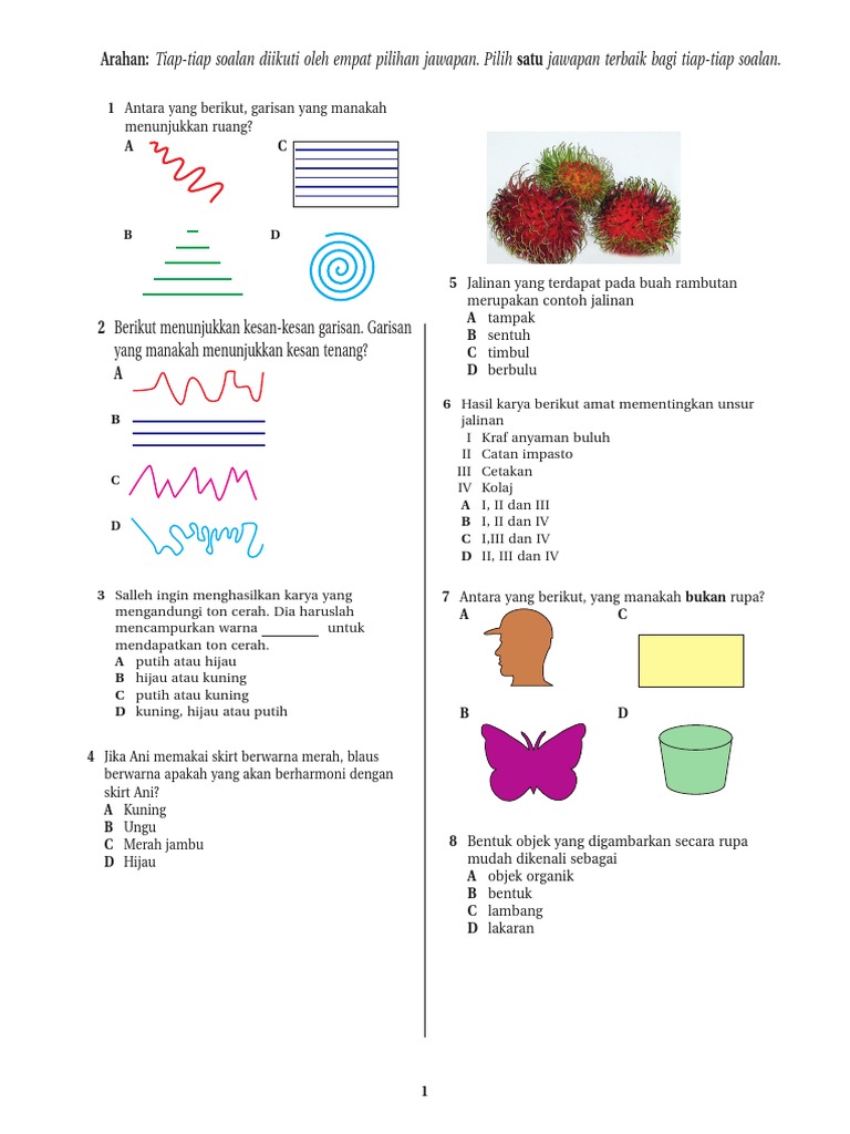 Soalan Ujian Kemajuan 1 Seni Tingkatan 2 2018
