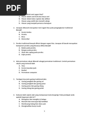 Soalan Peperiksaan Ahkir Bersama Jawapan Tahun Pendidikan Seni Tingkatan 2