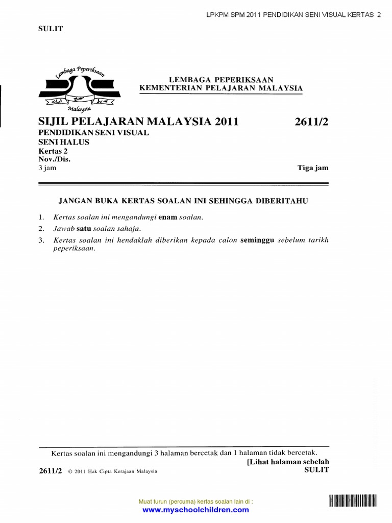 Lpkpm Spm 2011 Pendidikan Seni Visual Kertas 2 Pdf