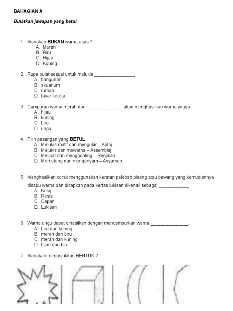 Soalan Pendidikan Seni Visual Tahun 4 Kssr