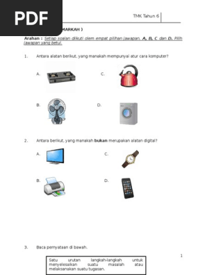 Soalan Tmk Teknologi Maklumat Komunikasi Tahun 6 Ujian 1 Bulan Mac 20