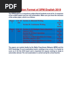 Examination Format Of Spm English 2019 Docx