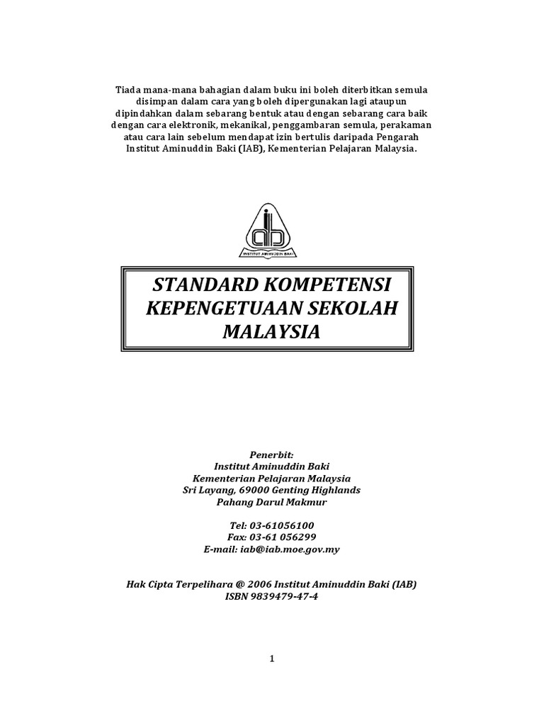 Standard Kompetensi Kepengetuaan Sekolah Malaysia Skksm Pdf