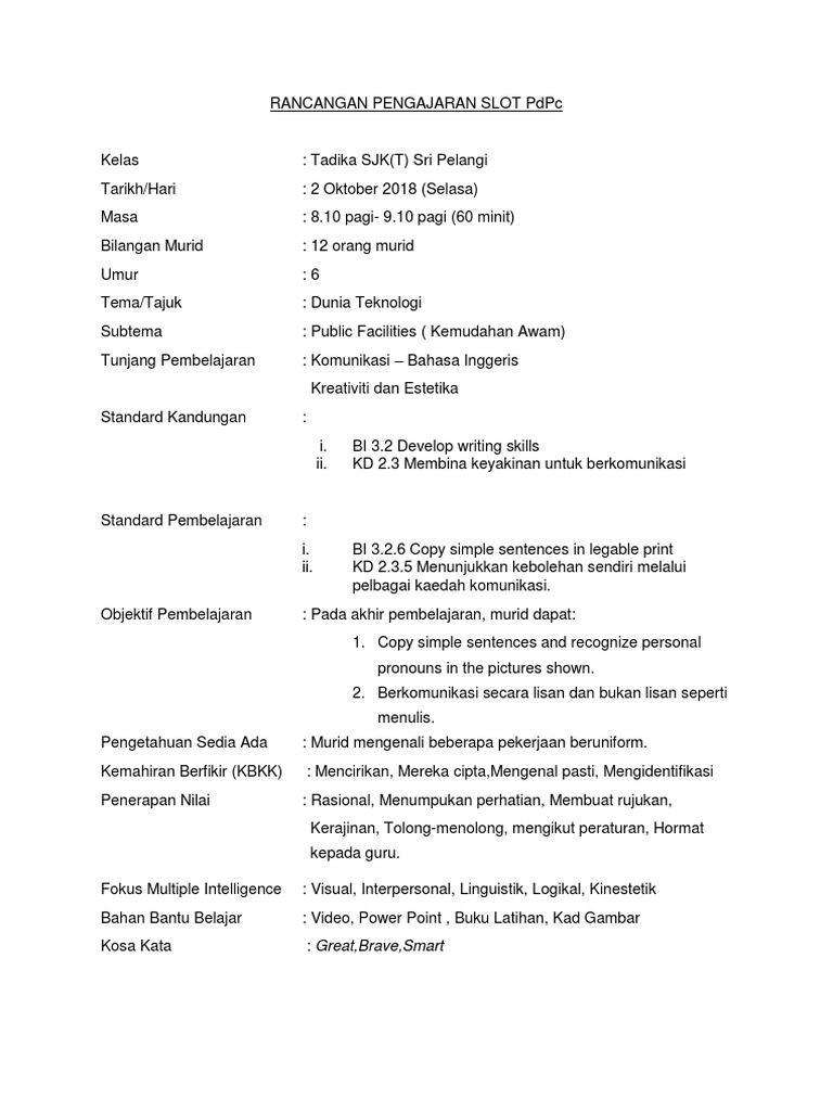 Rancangan Pengajaran Tahunan Prasekolah