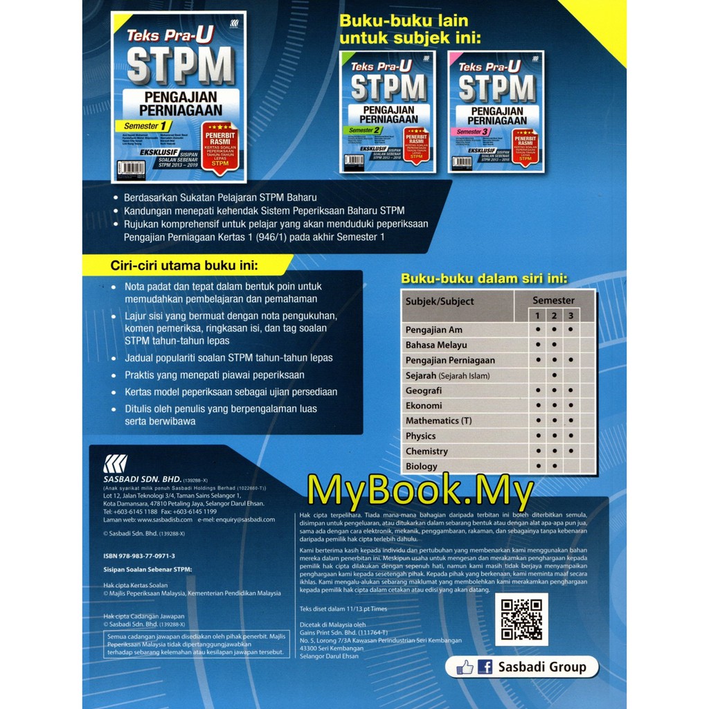 Myb Buku Teks Pra U Stpm Semester 1 Pengajian Perniagaan Sasbadi Shopee Singapore